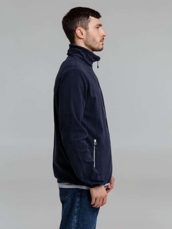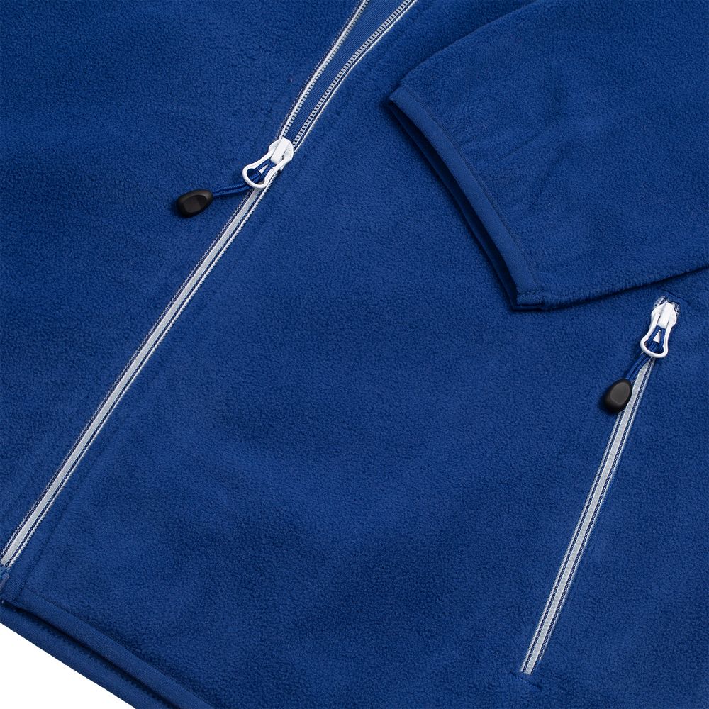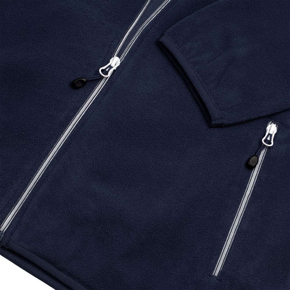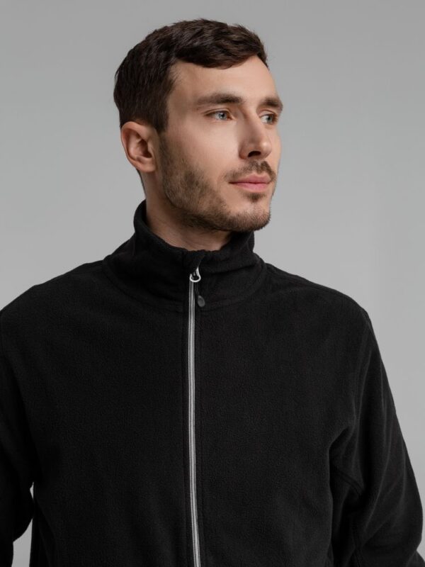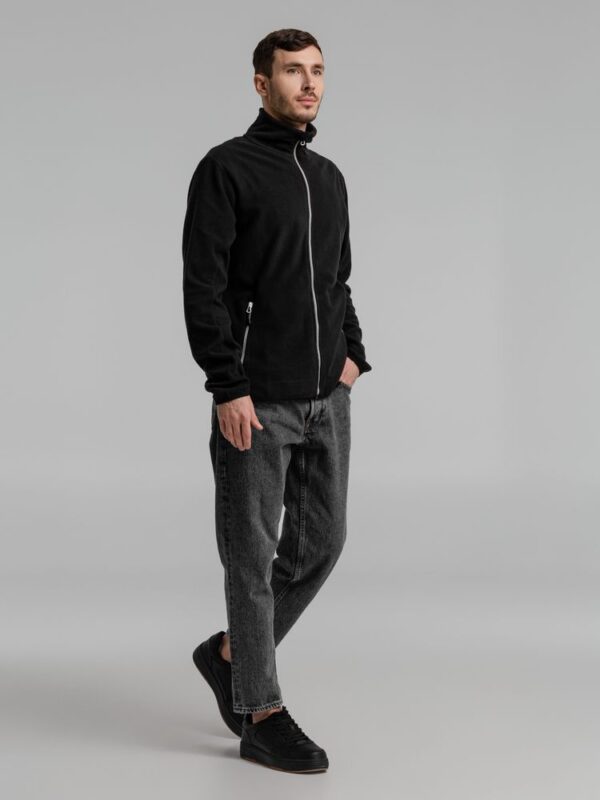 Толстовка из микрофлиса. Передние карманы на молнии, манжеты и низ куртки на тонкой резинке, застежка-молния контрастного цвета.