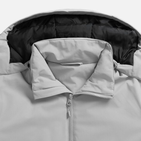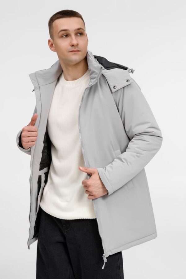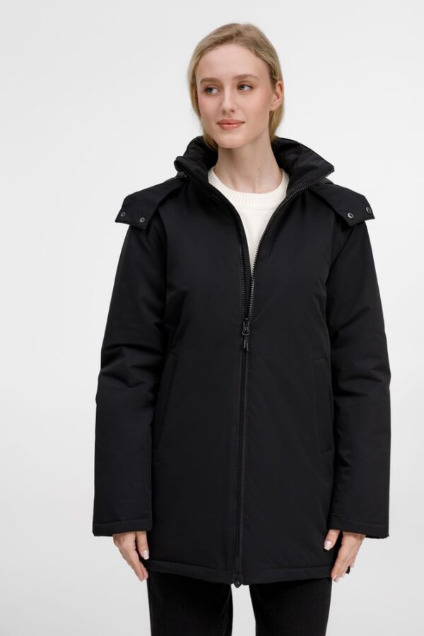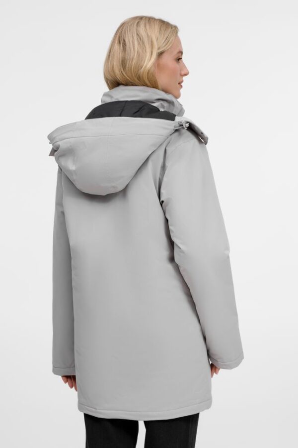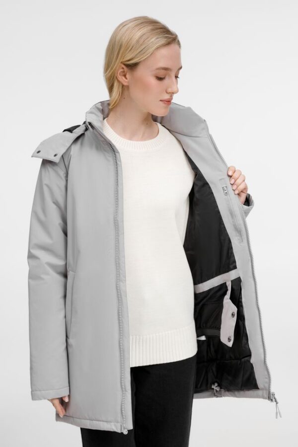 - Отстегивающийся капюшон с утяжкой и кнопками для плотного прилегания и защиты горла