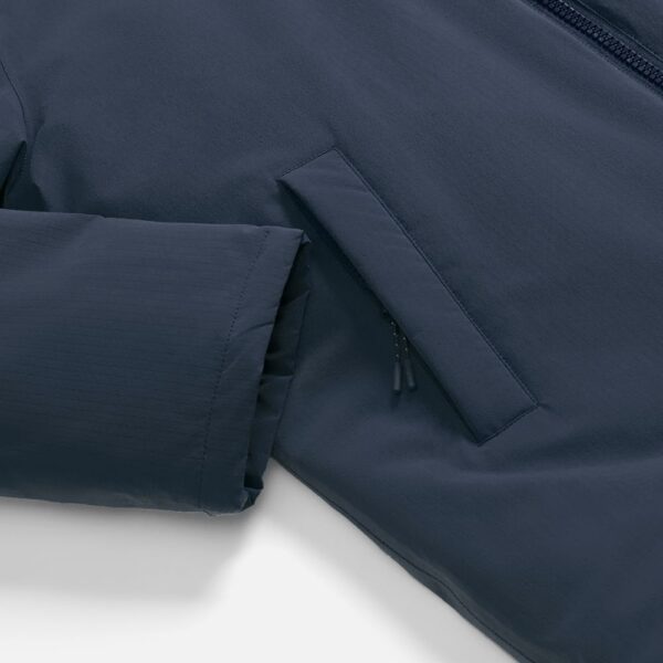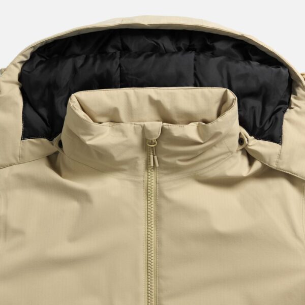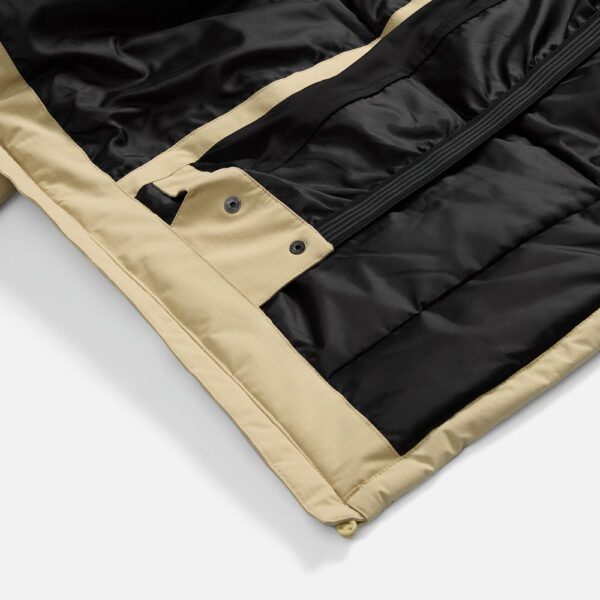Благодаря утеплителю в этой парке будет комфортно при температуре до -15°C. Продуманные детали: отстегивающийся капюшон, воротник-стойка и манжеты на резинке, а также защитная «снежная юбка» как в профессиональных горнолыжных брендах, — обеспечивают дополнительную защиту от холода и ветра.