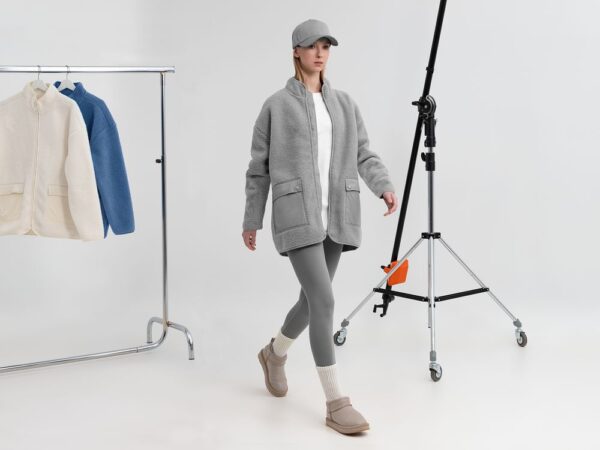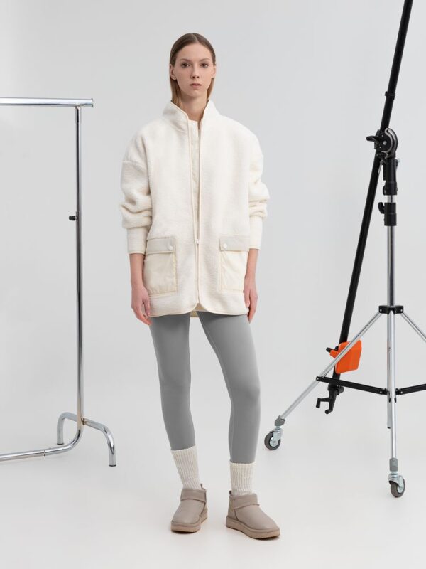 Куртка на молнии из современного двухслойного материала — модный искусственный мех снаружи и уютный флис внутри. Накладные карманы из гладкого нейлона создают заметный визуальный контраст и делают куртку Oblako по-настоящему стильным предметом гардероба.