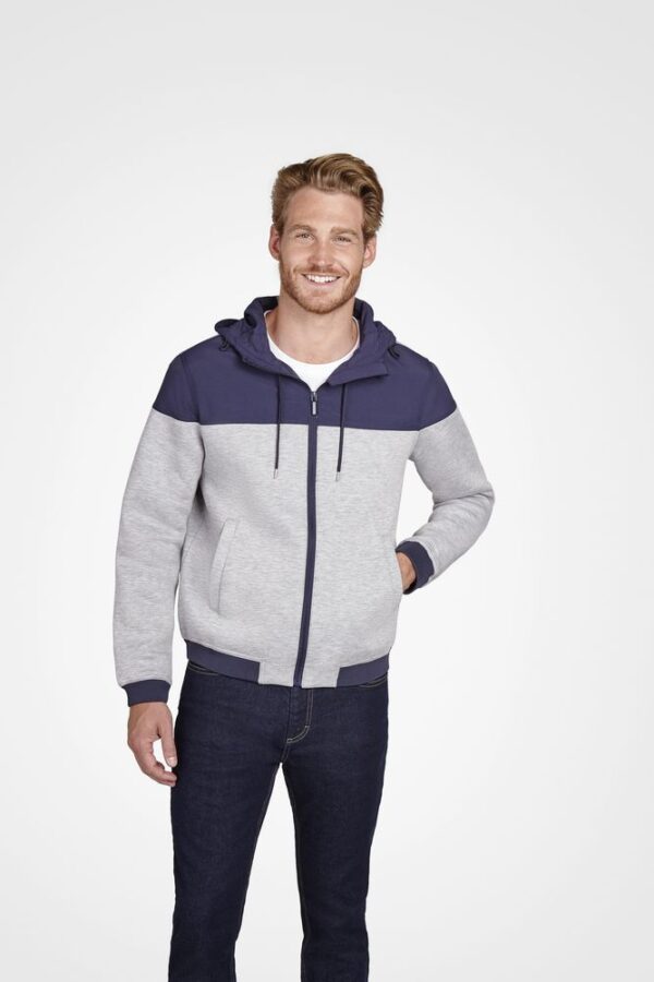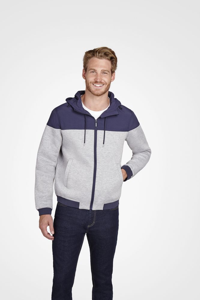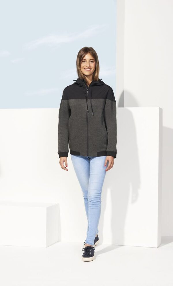 Куртка из комбинированного материала с капюшоном.