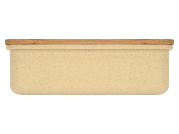 Прекрасный подарок для всех, кто с трепетом и заботой относится к окружающему миру, ведь в его составе 50% экологически чистого пшеничного волокна и 50% пластика. Контейнер для еды закрывается крышкой, выполненной из бамбука, материала, который также не несет никакого вреда природе. В комплекте тканевый ремешок и приборы.