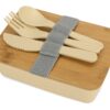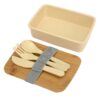 Прекрасный подарок для всех, кто с трепетом и заботой относится к окружающему миру, ведь в его составе 50% экологически чистого пшеничного волокна и 50% пластика. Контейнер для еды закрывается крышкой, выполненной из бамбука, материала, который также не несет никакого вреда природе. В комплекте тканевый ремешок и приборы.