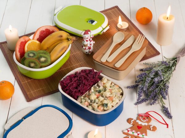Ланч-бокс Shen — прекрасный подарок для ценителей необычных и полезных сувениров. Его главные особенности — контрастный дизайн и экологичный материал. У модели есть удобные складывающиеся ручки для переноски. Ланч-бокс на 50% выполнен из пшеничного соломенного волокна и на 50 % – из пищевого пластика.
