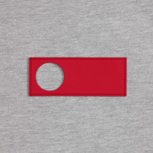 • сделать нанесение на изделии, поверх которого нашить лейбл так, чтобы вырубка стала частью целостного уникального дизайна.
