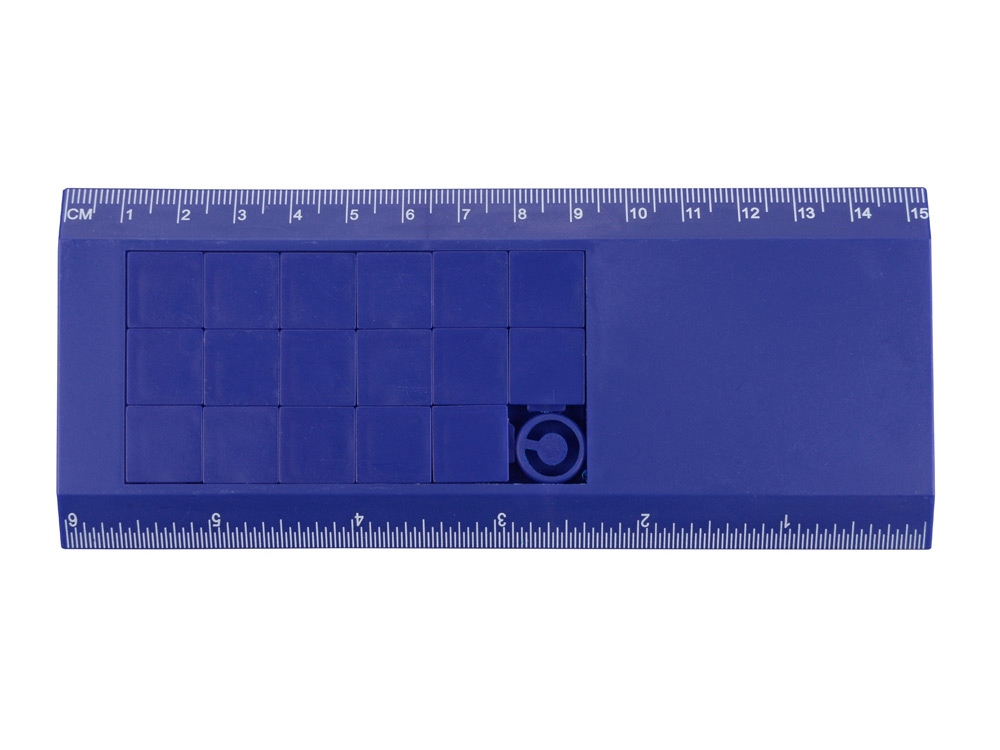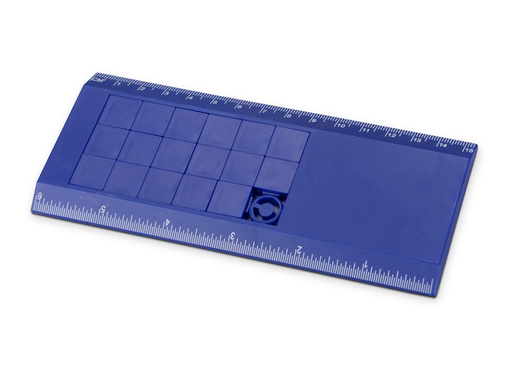 Кто сказал, что логику и мелкую моторику можно развивать только детям? Пару-тройку минут свободного времени в офисе можно посвятить знакомой всем с детства забаве – игре в «пятнашки». Игра расположена на линейке, так что это еще и нужная канцелярская принадлежность. Цвета в ассортименте.