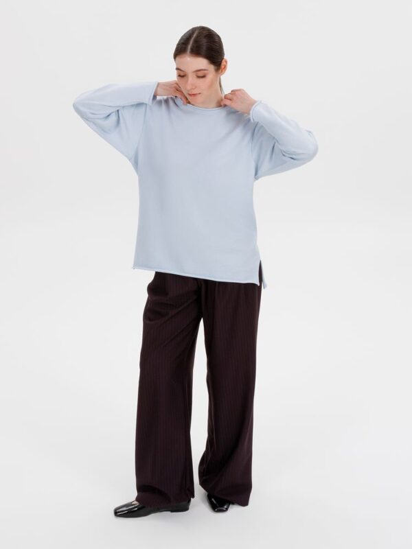 Лонгслив Fuori средней плотности с широким воротом, спущенной линией плеча и свободно подворачивающимися краями по низу, на рукавах и вороте, которые добавляют модели еще большей расслабленности. Прозрачная бирка с логотипом бренда на рукаве не нарушает минималистичности образа.