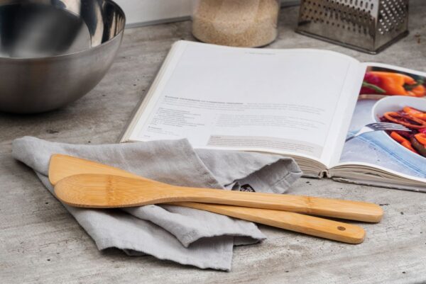 Ложка изготовлена из бамбука, благодаря чему она не скользит в руке, не царапает поверхность и не впитывает запахи.
