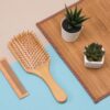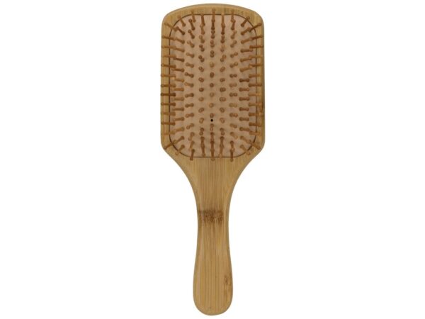 Массажная щетка для волос «Bambola» из бамбука бережно расчесывает сухие и влажные волосы, придает им блеск, объём и гладкость.