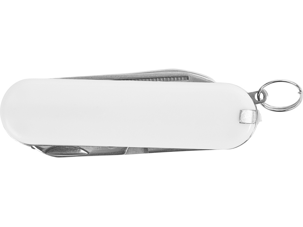 Складной нож в пластиковом глянцевом корпусе. Можно удобно прикрепить на ключницу. В комплект входят: