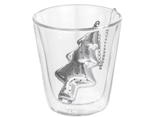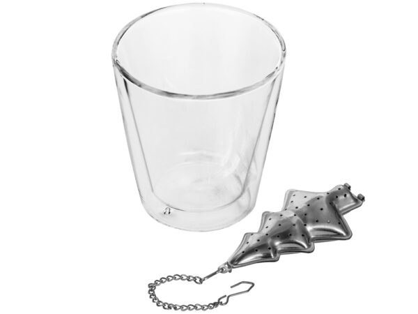 Набор состоит из ситечка для чая и стакана с двойными стенками, который выполнен из боросиликатного стекла. Интересная конструкция стакана позволяет взглянуть на напиток с новой, неожиданной стороны, а двойные стенки не дадут обжечь руки.