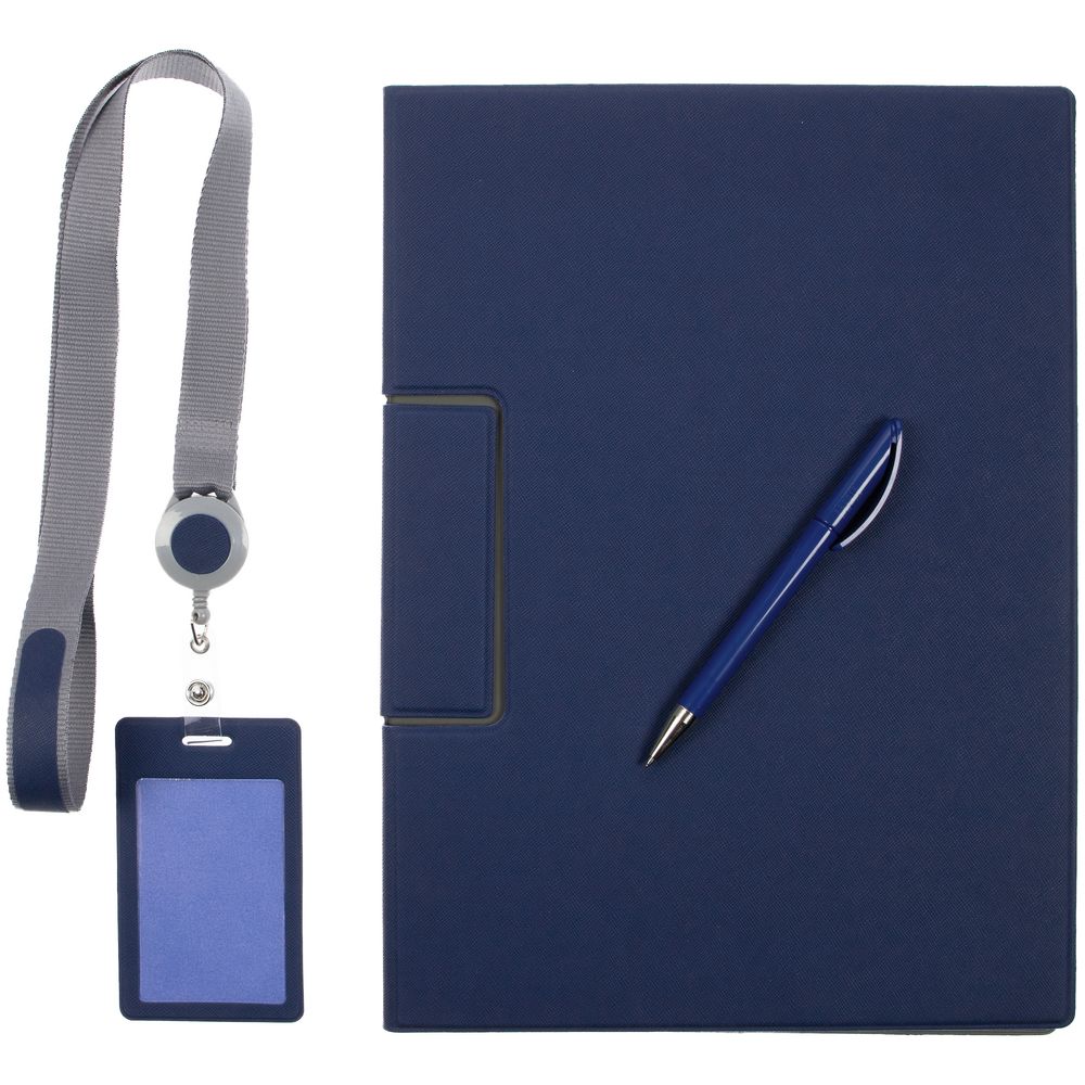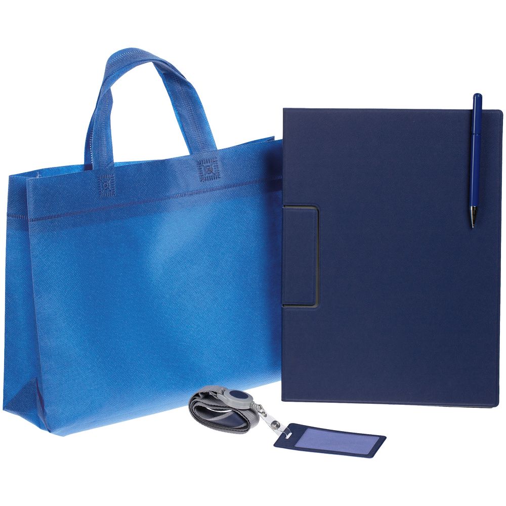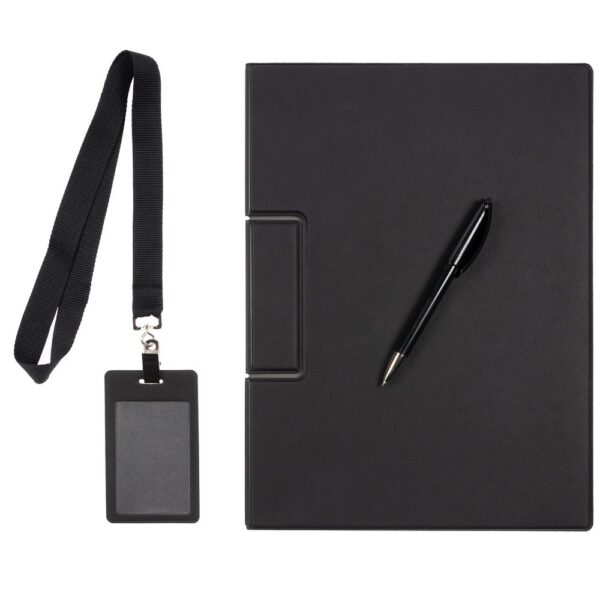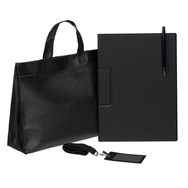 Лаконичный и строгий приветственный набор Devon Span содержит самое необходимое для нового сотрудника или участника профессионального мероприятия. Это папка-планшет и ручка — для комфортных записей и фиксации документов во время деловых переговоров или докладов, а также чехол для пропуска на ленте — для безопасности и идентификации — все в компактной легкой сумке.