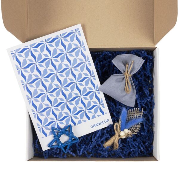 Коробка с наполнителем, шубером, открыткой и милыми украшениями Adorno — готовое решение для упаковки личного и корпоративного подарка.