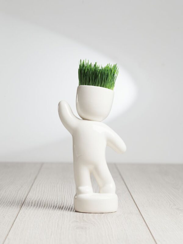 Фигурки Funky — экологичное украшение интерьера, кусочек зеленого газона в офисе или дома. Посадите волосы-травинки и наблюдайте, как меняется человечек. Вы можете сделать ему стильную стрижку, добавить настроения, нарисовав маркером лицо, — и поменять образ, когда трава снова подрастет.