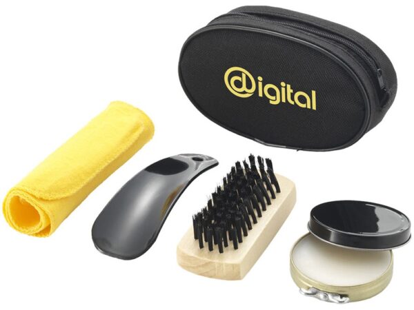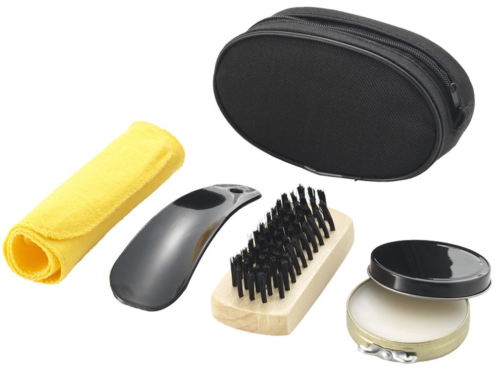 Набор для ухода за обувью — отличный подарок для тех, кто часто ездит в деловые поездки. В наборе такие необходимые аксессуары, как бесцветный крем для обуви, ложка, щетка, салфетка для полировки. Компактно упакованы в нетканый чехол, на который можно нанести изображение.