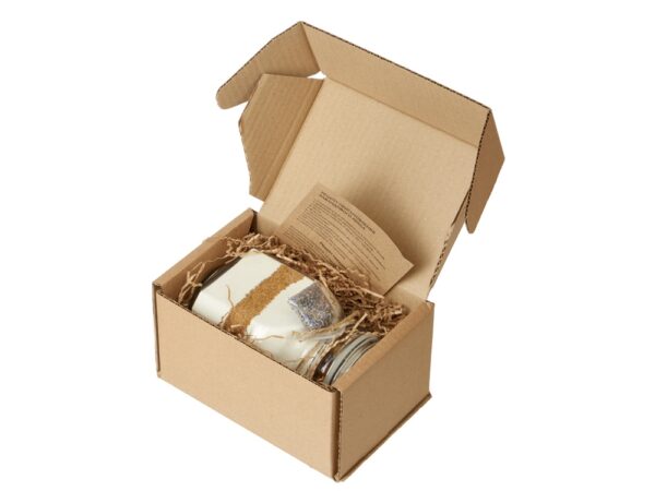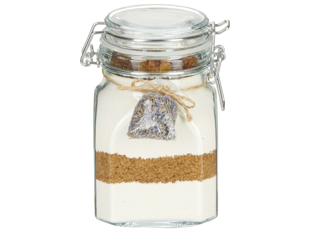 банка 760 мл, смесь для приготовления лавандового кекса, пакетик с лавандой, рецепт, упаковочный материал
