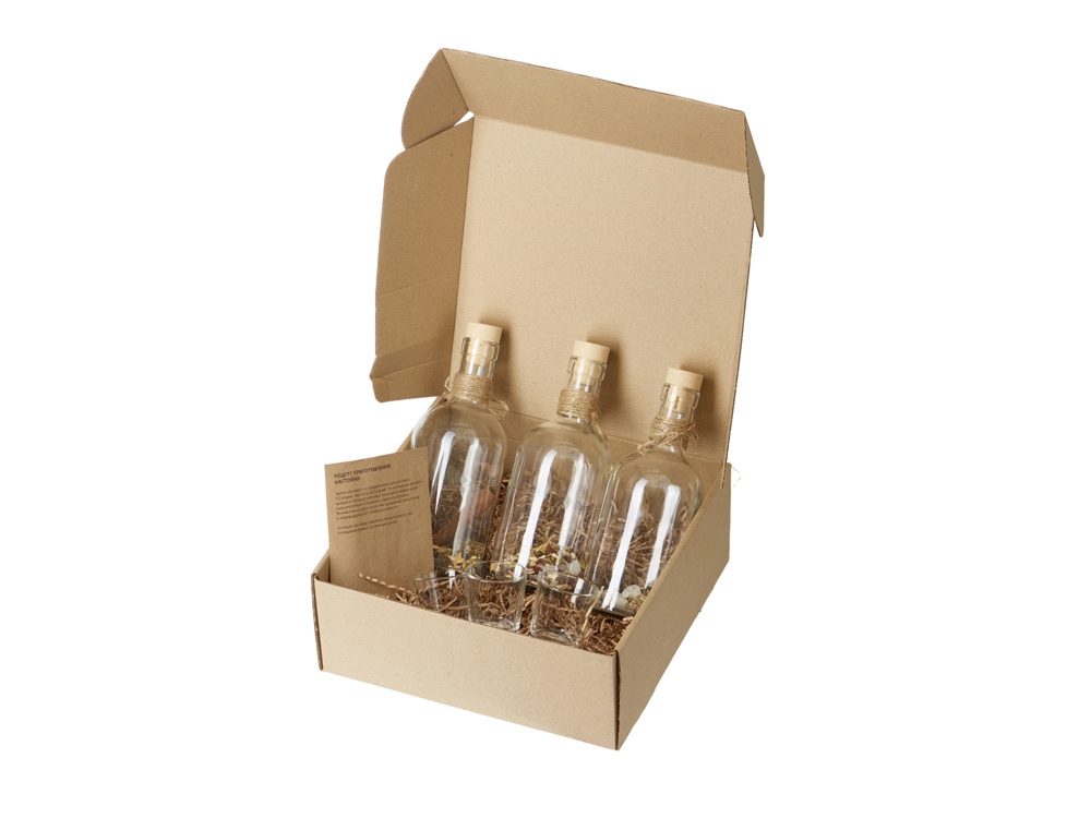 бутылка 0,5 л со смесью апельсиновый микс, бутылка 0,5 л со смесью вермут, бутылка 0,5 л со смесью анисовая, стопка 50 мл- 3 шт, упаковочный материал