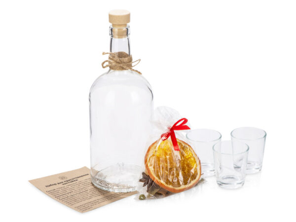 бутылка (0,7л) d8,9 х 22см, стопка (50 мл) d4,9 х 5,4см- 3шт, специи 8,8 х 10 х 3,5 см