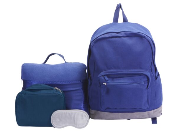 Отличное предложение для тех, кто собрался в путешествие! Рюкзак вмещает до 8 кг и прекрасно подойдет для ручной клади. Пледом можно укрыться в полете или использовать как подушку в пути или в случае длительного ожидания рейса. А чтобы сон был комфортным, воспользуйтесь маской на глаза, которую можно хранить вместе другими необходимыми для путешествия мелочами в удобном несессере. Такой набор обеспечит вам комфорт в пути и удобство в поездке на любом виде транспорта!