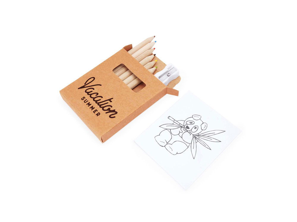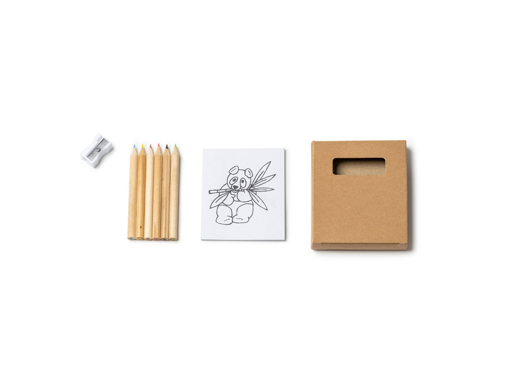 Набор для рисования для детей. В комплекте блокнот на 20 листов с рисунками, 6 цветных карандашей и точилка.