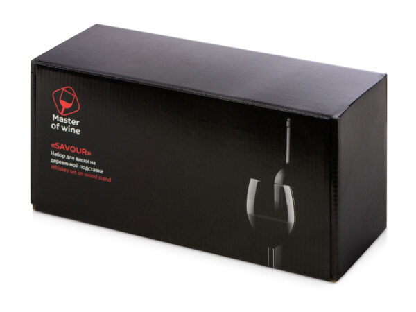 Набор Master of Wine состоит из дубовой подставки для сета, двух бокалов для крепких напитков и двух шайб из нержавеющей стали. Весь набор упакован в картонную фирменную коробку бренда — можно смело дарить!