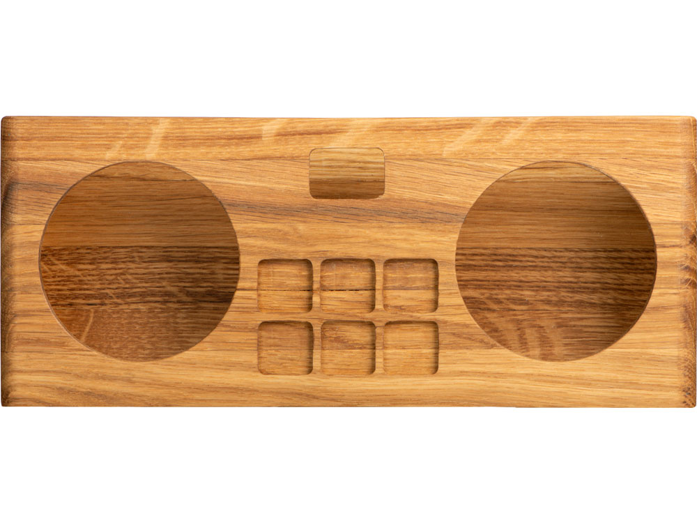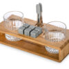 Для сервировки в набор входит дубовая подставка с отверстиями под бокалы и щипцы, а также выемки под кубики.