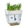 По сути — это замкнутая экосистема, поддерживающая баланс между растениями и рыбкой. Её отходы с помощью насоса поднимаются к горшочкам сверху и питают вашу маленькую плантацию. Взамен рыбка получает очищенную воду, а у любого городского жителя всегда есть в наличии свежая зелень к столу.