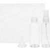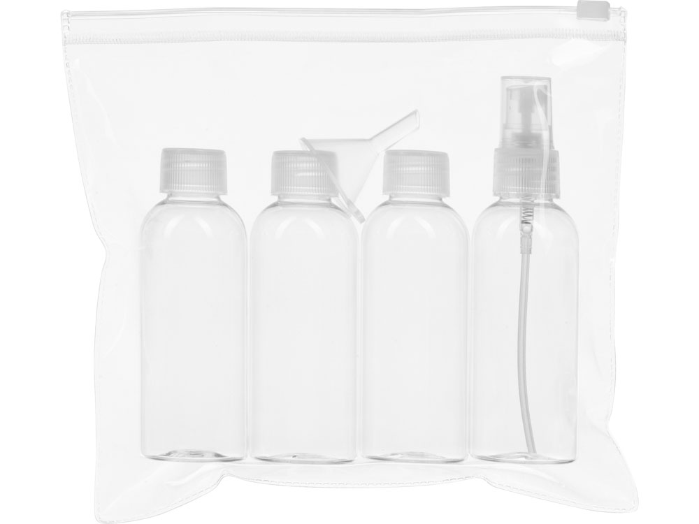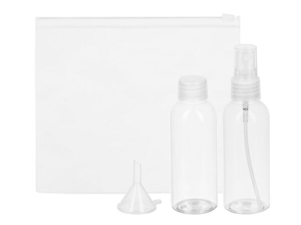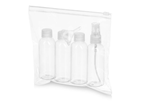 Собирая чемодан, мы всегда стремимся уменьшить вес и объем дорожной сумки. Дорожный набор «Mardid» в этом деле первый помощник. В набор входят три бутылки, объемом в 80 мл., 1 бутылка-спрей и мини-воронка. В эти бутылочки легко перелить необходимые косметические средства, чтобы не тащить с собой целый флакон. Упакован в прозрачную пластиковую косметичку на застежке Zip-lock.