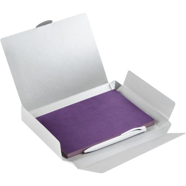 Компактный набор со стильным ежедневником в гибкой обложке с покрытием софт-тач и подходящей ручкой. Все составляющие сложены в самосборную коробку, которая придает набору законченность.