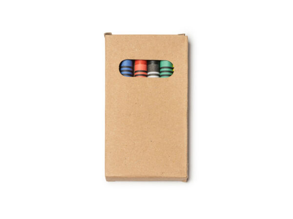 Набор из 6 восковых карандашей в коробке из переработанного картона.
