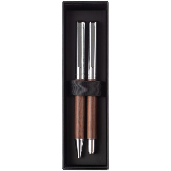 Набор из ручки и роллера Waldo — выбор тех, кто ценит во всем качество и уникальность. Благородный глубокий оттенок древесины ореха, гармоничное сочетание эстетики и функционала делают набор Waldo эффектным деловым подарком.