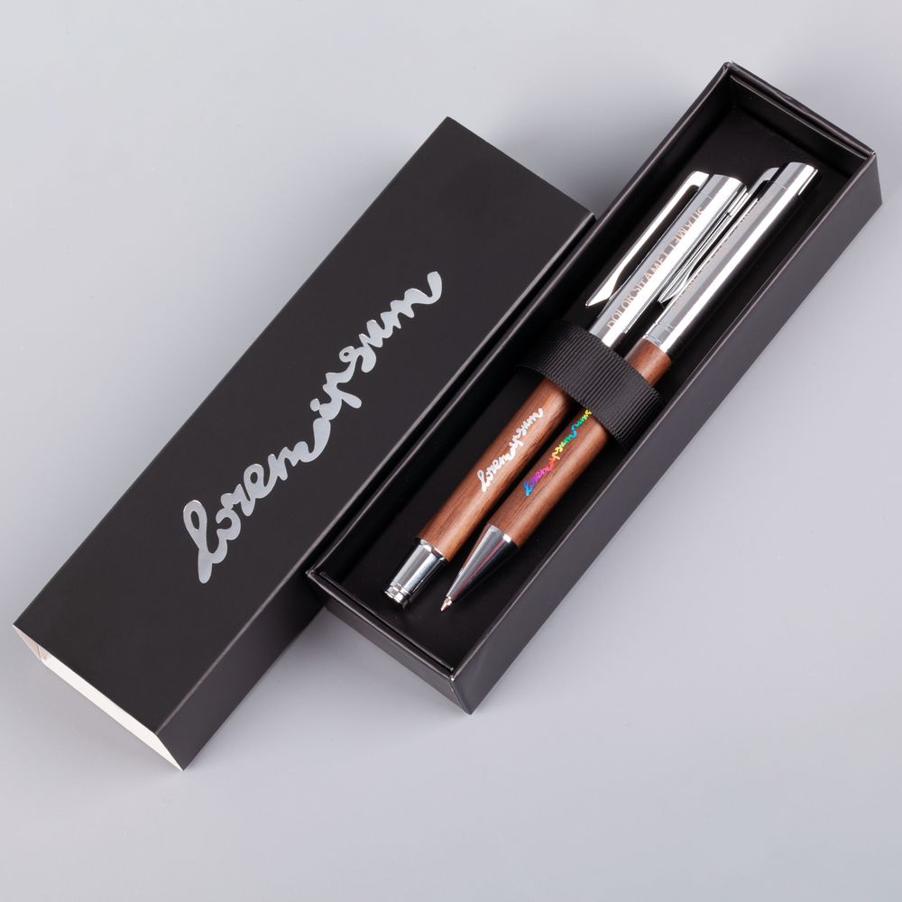 Набор из ручки и роллера Waldo — выбор тех, кто ценит во всем качество и уникальность. Благородный глубокий оттенок древесины ореха, гармоничное сочетание эстетики и функционала делают набор Waldo эффектным деловым подарком.