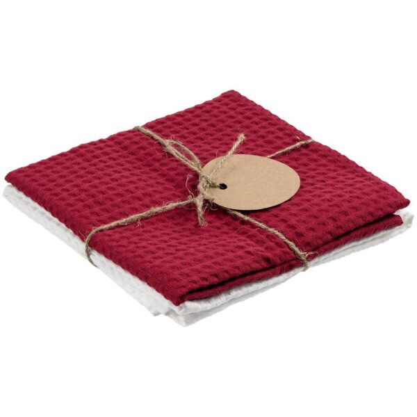 В набор входят 2 кухонных полотенца, перевязанных бечевкой с картонной биркой, на которую можно нанести логотип.