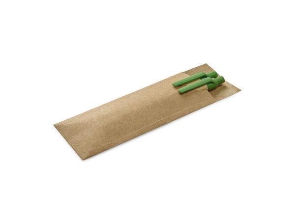 Набор из шариковой ручки и механического карандаша из крафт-бумаги. Оба с зажимом. Шариковая ручка с синими чернилами, а механический карандаш с графитом 0,5 мм. Поставляется в картонном чехле. ø10 x 138 мм | сумка: 175 x 55 мм. Вид нанесения, рекомендуемый поставщиком: тампопечать, УФ-печать.