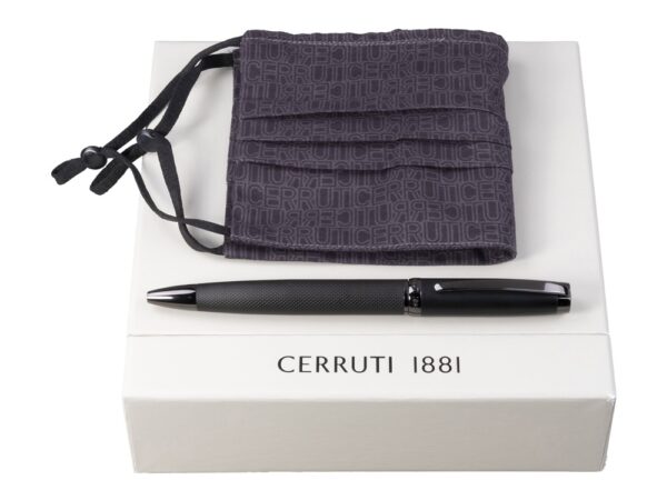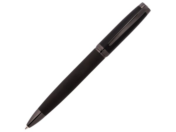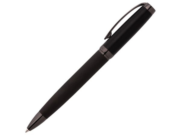 — шариковая авторучка в матово-чёрном корпусе с отделкой из оружейного металла с поворотным механизмом,