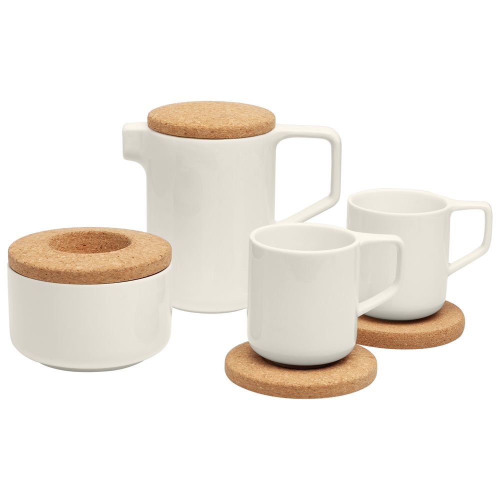 Отвлечься от повседневной суеты за чашечкой горячего чая или ароматного кофе особенно приятно с коллекцией Riposo. Продуманная функциональность и яркий контраст текстурной пробки и гладкого молочно-белого фарфора — для тех, кто следит за последними тенденциями и всегда выбирает комфорт.В набор входит:
