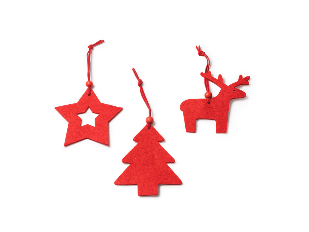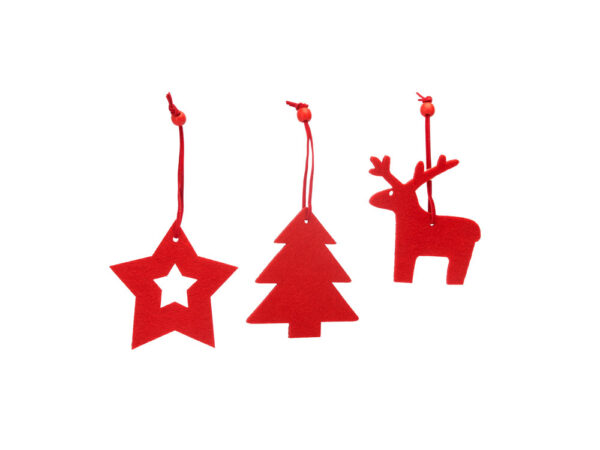 Набор рождественских украшений из фетра. Включает три игрушки: звезда, елка и олень.