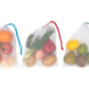 Набор из 3 сетчатых сумок из вторичного ПЭТ. Сумки многоразового использования, их можно использовать для фруктов и овощей как альтернативу пластиковым пакетам. У всех сумок есть затягивающий шнурок. Переработанный PET пластик.