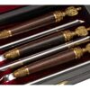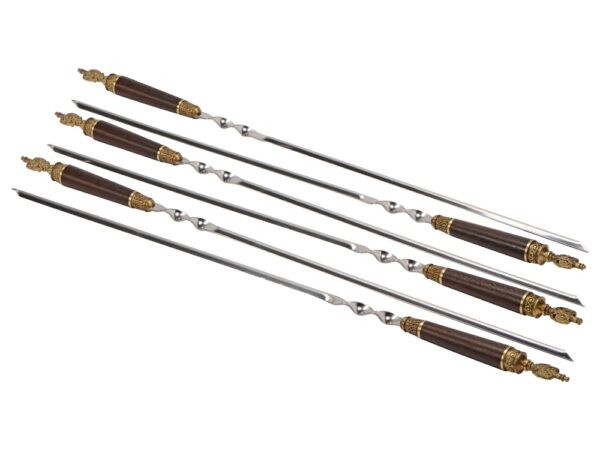 Шампура из нержавеющей стали с ручками из дерева венге и литьем в виде герба РФ. Дипломат из натуральной кожи с бархатной отделкой.
