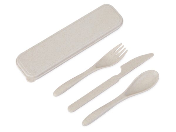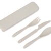 Набор столовых приборов Ron состоит из вилки, ножа и ложки. Они хранятся в удобном боксе, выполненном в едином стиле и цвете. Все приборы изготовлены на 50 % из бамбукового волокна и на 50 % — из полипропилена. Этот компактный и стильный набор удобно брать с собой на работу, в путешествие или на пикник.