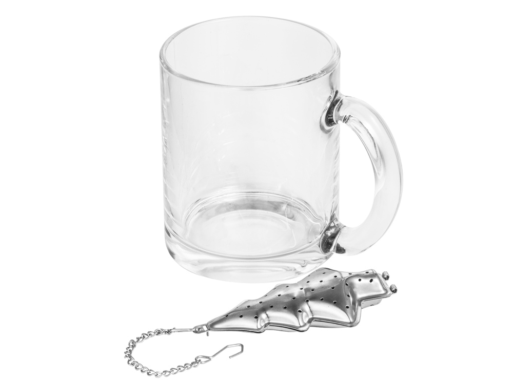 Стеклянная кружка и ситечко для чая — готовый самодостаточный зимний сет, который по желанию можно дополнить пачкой листового чая. Все уже готово для приятного зимнего чаепития — пора дарить!