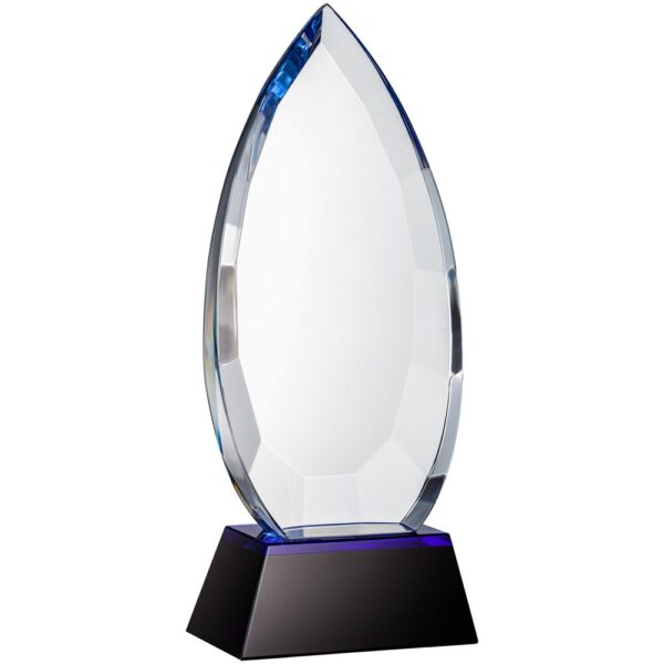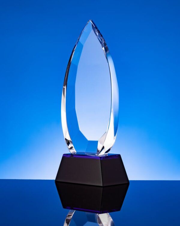 Стела изготовлена из стекла К9, в основе которого лежит оптическое боросиликатное стекло. Эту марку стекла отличает низкий процент посторонних включений, высокий показатель преломления и высокая прозрачность — идеальные качества для изготовления наград премиального уровня.