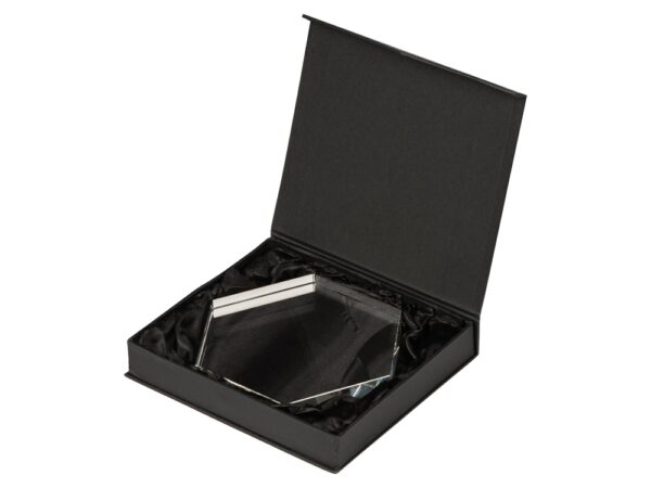 Награда выполнена из прозрачного стекла и не имеет постамента. Форма шестигранника часто встречается в природе, например, в пчелиных сотах, и является символом гармонии и изобилия.