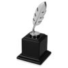 Элегантное серебристое перо на постаменте черного цвета. Замечательная награда для победителей литературных конкурсов. На постамент награды можно нанести любую надпись или прикрепить шильд.