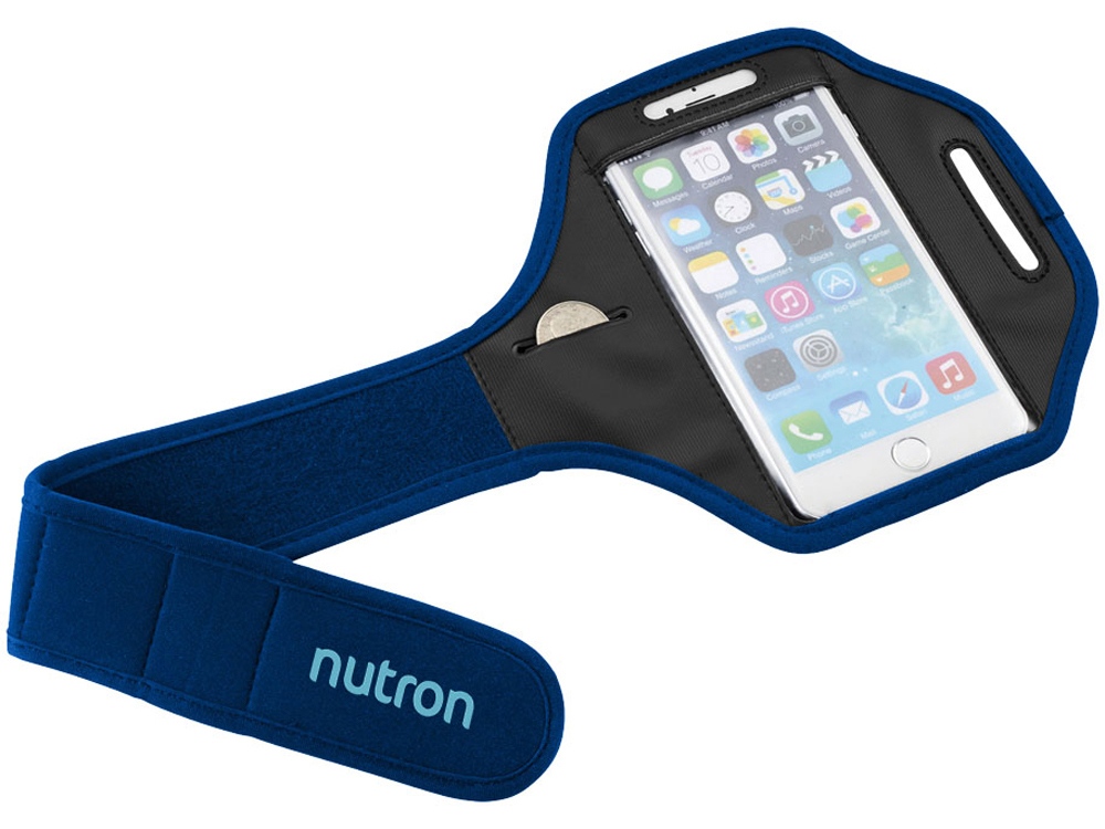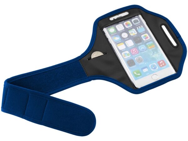 Наручный чехол Gofax для смартфонов с сенсорным экраном. Регулируемый наручный чехол с застежкой на липучке и покрытием из ПВХ для защиты смартфона. Подходит для больших смартфонов, таких как iPhone 6(S)-Plus и Samsung S6. Включает дополнительный карман для ключей или монет. Полиэстер.