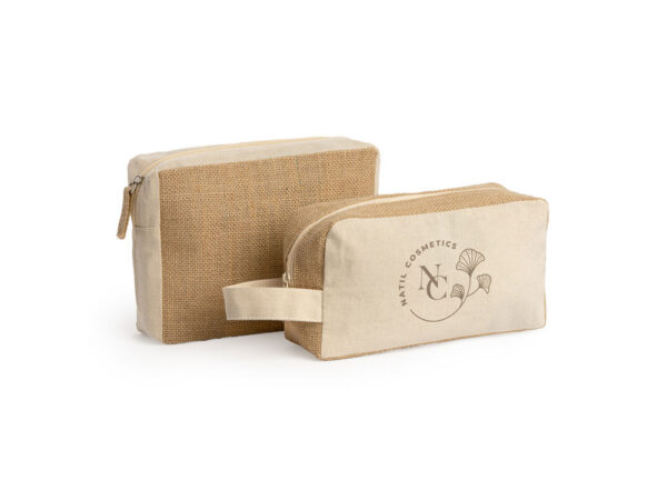 Несессер из хлопка и ламинированного джута. Застежка-молния с джутовым бегунком.