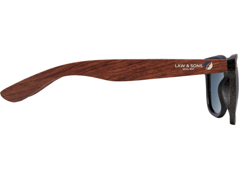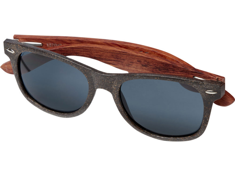 Эти солнцезащитные очки с ретро дизайном, изготовленные с учетом принципов устойчивого развития, являются идеальным сувениром, который можно подарить во время промо-акций на летних фестивалях, мероприятиях и во время других событий на свежем воздухе в солнечную погоду. Каркас изготовлен из смеси пластика и кофейных волокон, что позволяет сократить использование первичного пластика. Легкие и удобные дужки также изготовлены из кофейных волокон из устойчивых, экологически и социально ответственных источников. Эти очки соответствуют стандарту EN ISO 12312-1, имеют линзы со степенью защиты UV400, которые относятся к категории 3, что делает их идеальным выбором для защиты от яркого солнечного света. Пластик PP, Coffee Fiber.
