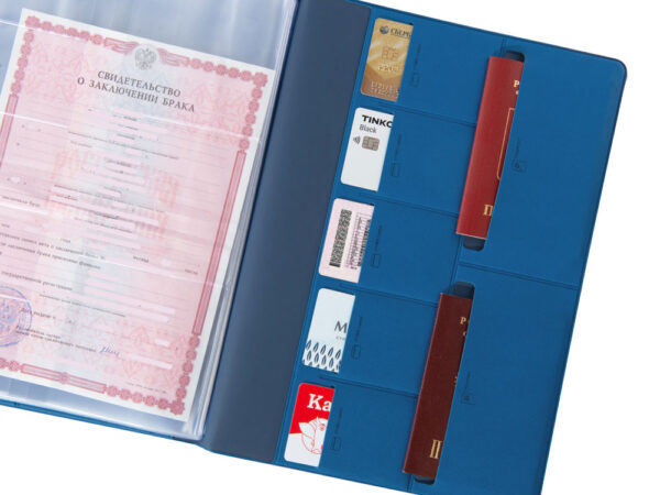 С ним свидетельства о рождении, браке и др. важные документы будут рассортированы и доступны для просмотра, будучи помещенными в прозрачные кармашки из пленки ПВХ.