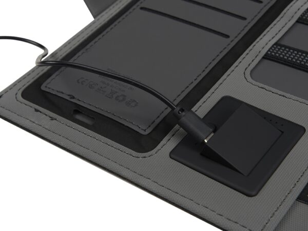 Органайзер «Powernote» — стильный бизнес-подарок, который в полной мере воплощает идею многофункциональности. С его помощью можно заряжать гаджеты как беспроводным способом, так и через кабель, эргономично хранить целый ряд предметов — от ручек и проводов до кредитных карт — и даже делать записи. Элегантность внешнего вида дополняется приятной текстурой обложки из мягкого полиэстера и высоким качеством внутренней отделки с элементами soft-touch покрытия. Практичный и технологичный аксессуар, который в состоянии заменить сразу несколько вещей.
