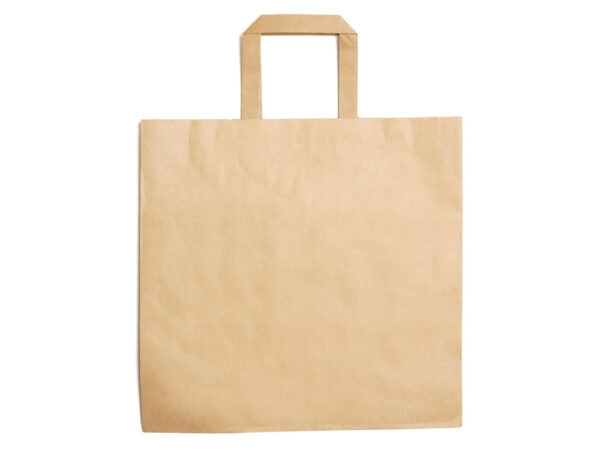Бумажный пакет 80 гр натурального цвета. Усиленные короткие ручки плоской формы.